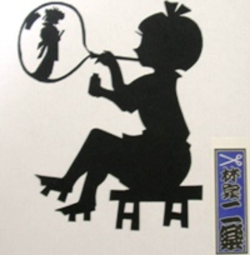 | 芸術ともいえる林家二楽師匠作の切絵。これを高座で数分で切ってしまう。なおかつもらえます。 |