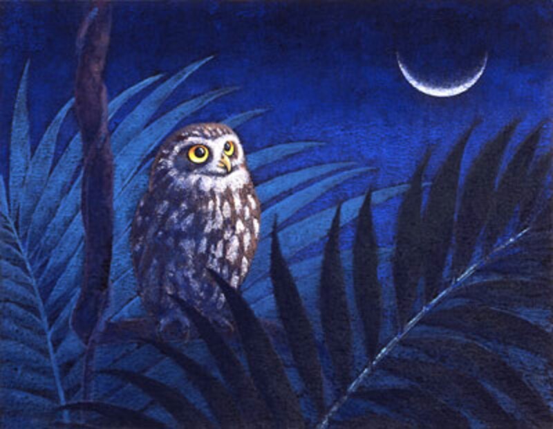 ●1982年 巣落ちの仔梟を飼い始める 左は「時を紡ぐ」(クリックで拡大) 耳のあるのが“みみずく”、ないのが“ふくろう”と思っていたが、 北海道の“しまふくろう”には立派な耳がある。もっともふくろう に耳が無い訳ではなく、みみずくの耳に見えるのは、飾り羽だそう なので深く追求しないことにしよう。 ●連載トップページへ ●山田真巳略歴 |