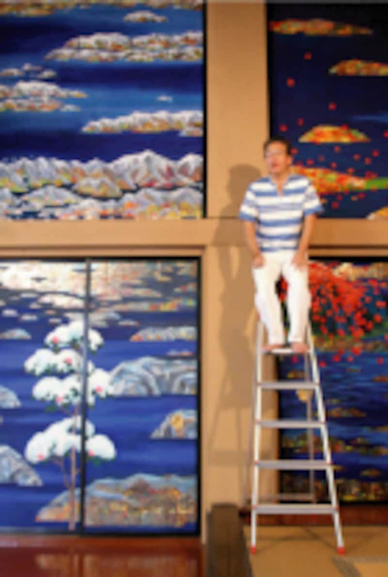 内容:仲山計介が数年来描いている、創世記(長さ100m 高さ2m)の始の部分(18mまで)の発表。混沌としたガス状(形が現れる以前)の状態を、多様な表現の可能性を試みながら、アルミ板に岩絵具で制作。以前、制作した屏風や小品も合わせて展示。