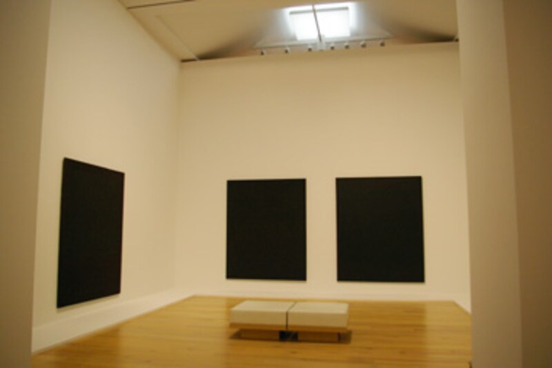 | 「黒い絵」の展示空間 それぞれの絵画は真っ黒ではなく、それぞれ漆黒、濃紫、焦げ茶であることに気がつきます |
