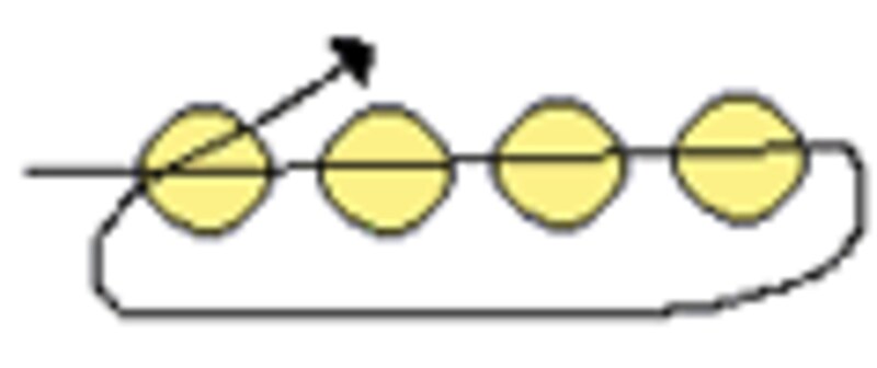 テグスの中央に丸小ビーズを通し、上記図のように編んでいきます。