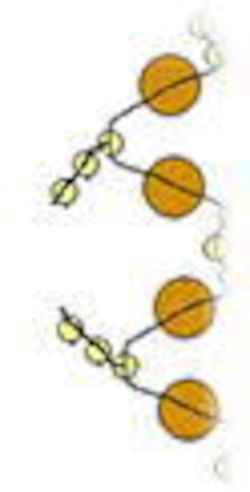 最後まで編んだら、両方のテグスに丸小ビーズを10個通します。これを1列目も同様に作成し、両方のテグス、合計4本をダルマチップに通し、つぶし玉でテグスを固定し、ダルマチップを閉じます。