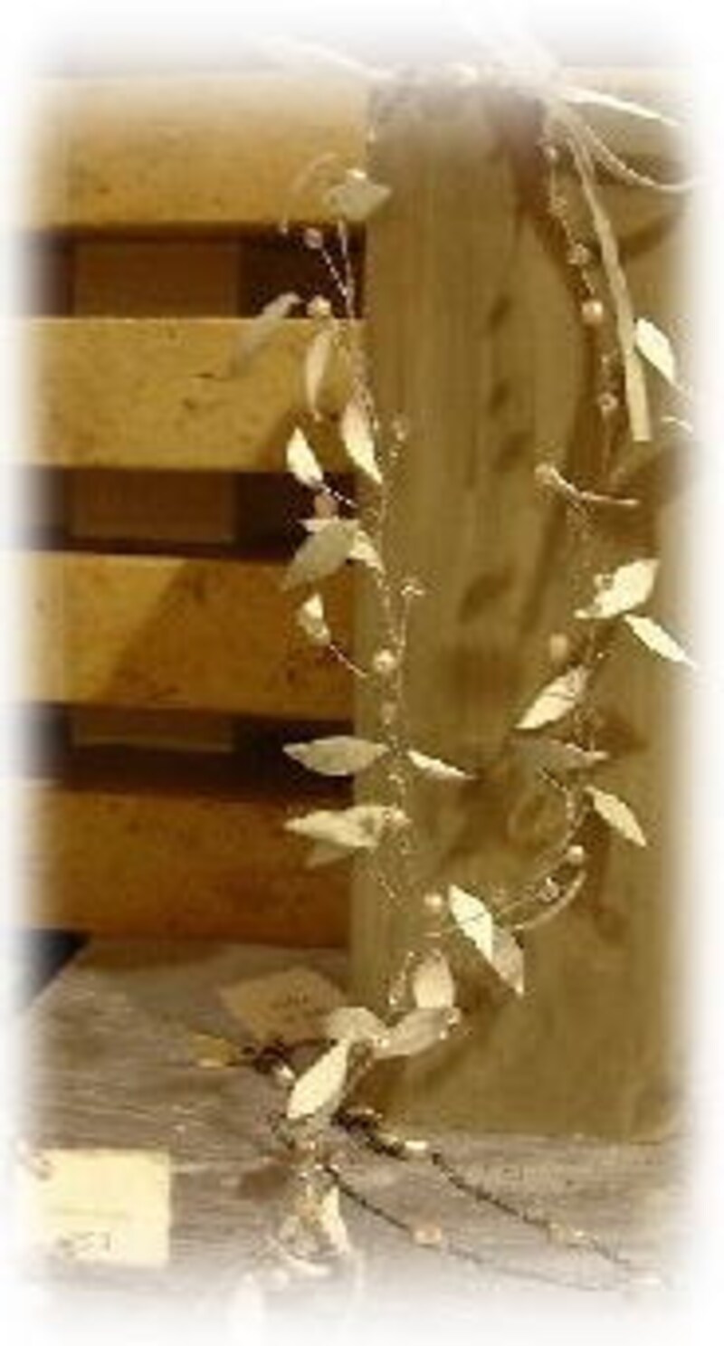 こちらはシャネルパールを使用したネックレスです。後ろをリボンで結ぶタイプですがリボンもアンティークっぽい味わいを見せてます。 \9,000(税別)他にお揃いのイヤリング・ピアス(\2,500~)もあります。セットアップしてもステキですね。