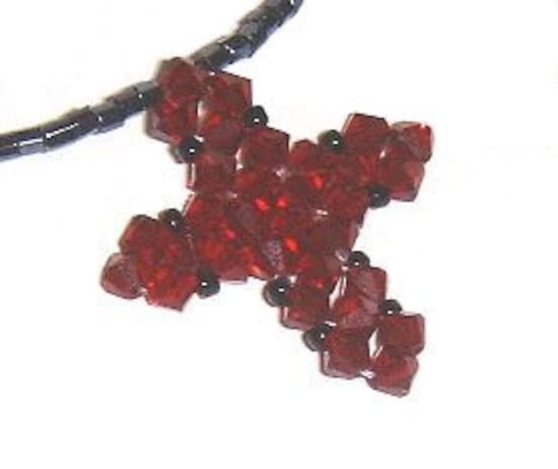 クリスマスシーズンにピッタリのスワロフスキーのクロスモチーフの作り方をご紹介します。ビーズの大きさを変えればチョーカーにもピアスにも大活躍のモチーフです。
