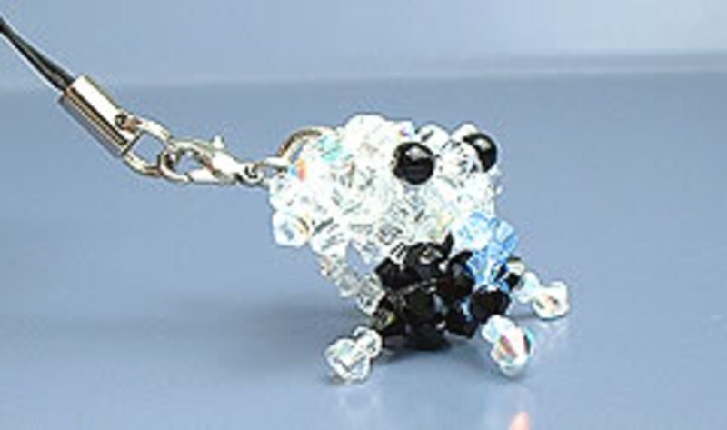 チワワのストラップは「タキシード」と「クリスタル」の2パターンあります。いずれもオーロラ加工のスワロフスキーをふんだんに使ってますのでとっても輝いてます。その分チョットお高いかな??? 自分で作ってみようかな・・・でも忙しいし、この愛らしい目を表現出来るかな???って悩んだ挙句、購入したガイドお勧めのストラップです! そして、何といってもチワワの最大の特徴であるクリッとした目の表情が愛らしいですね。丸小ビーズを使っているのですが絶妙のバランスで愛らしい目を表現しています。 |