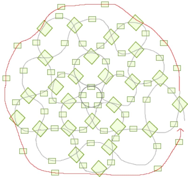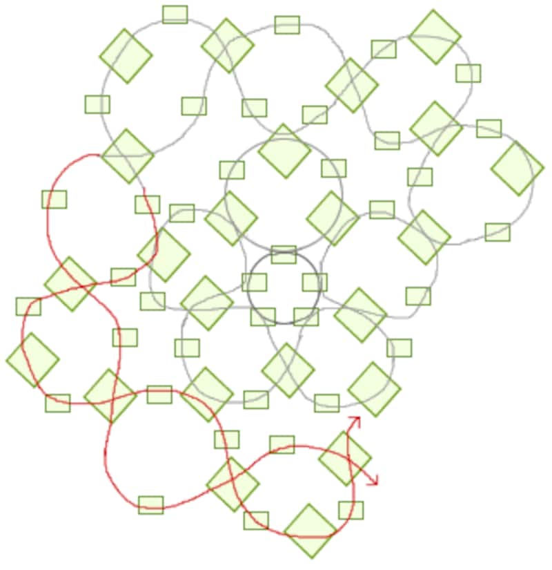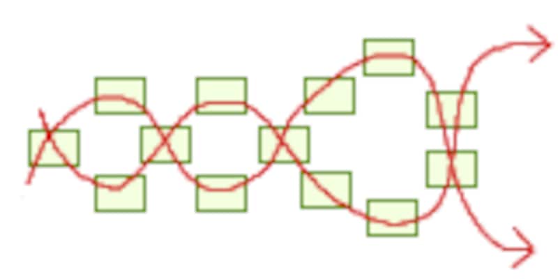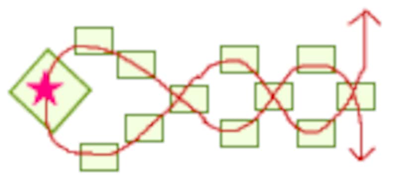 丸小ビーズをお好きなサイズまで図のように編んでいきます。 |