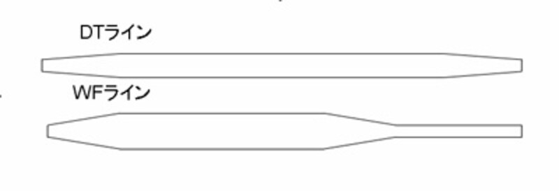 | DTラインとWFライン。DTラインは、コントロール性がよく、渓流や流れのある管理釣り場に向いている。WFラインは、湖や大型池のある管理釣り場で思いっきり投げるときに効果的 |
