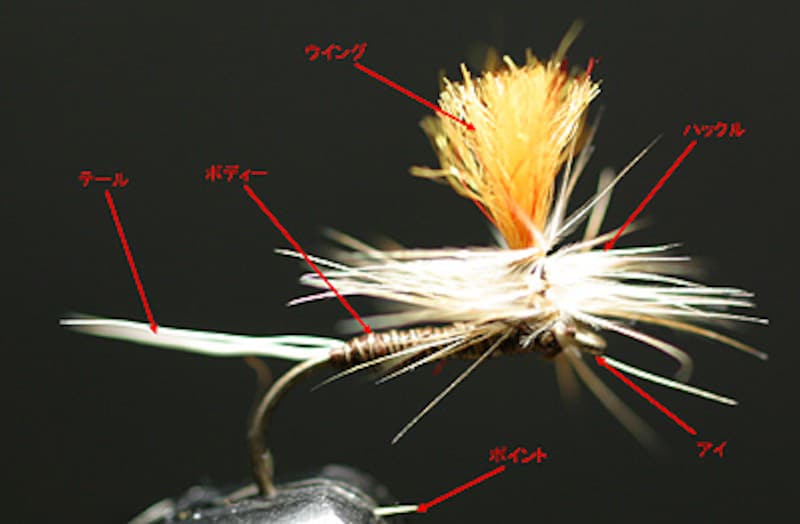 | フライ各部をこのように呼ぶ。各部分には様々なマテリアルが使われる |
