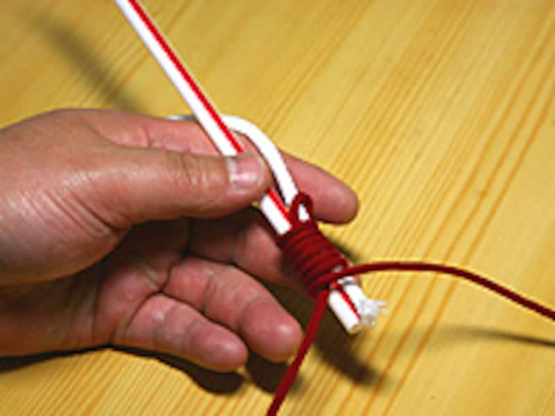 3.キレイに6~7回巻いたら準備完了。ネイル・ノットはここからが山場だ。