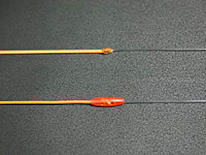 完成。これが実際のネイル・ノットの仕上がった状態。最近では、簡単にフライラインとリーダーを接続できるプラスチックグッズがあるが、結び目の大きさを比べればどちらが美しいか一目瞭然。キレイなノットは強度も高いのだ。