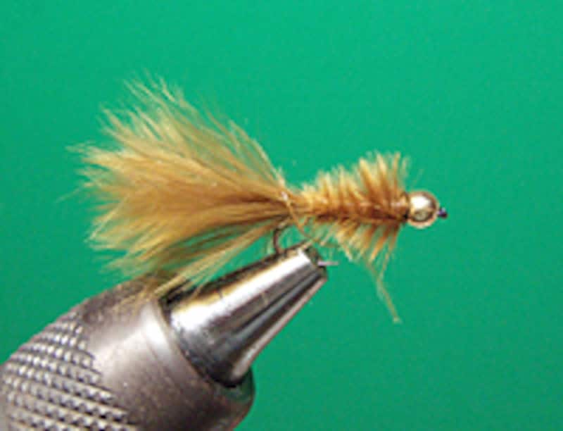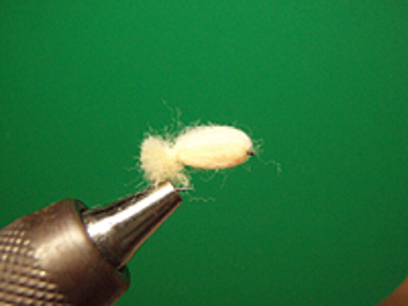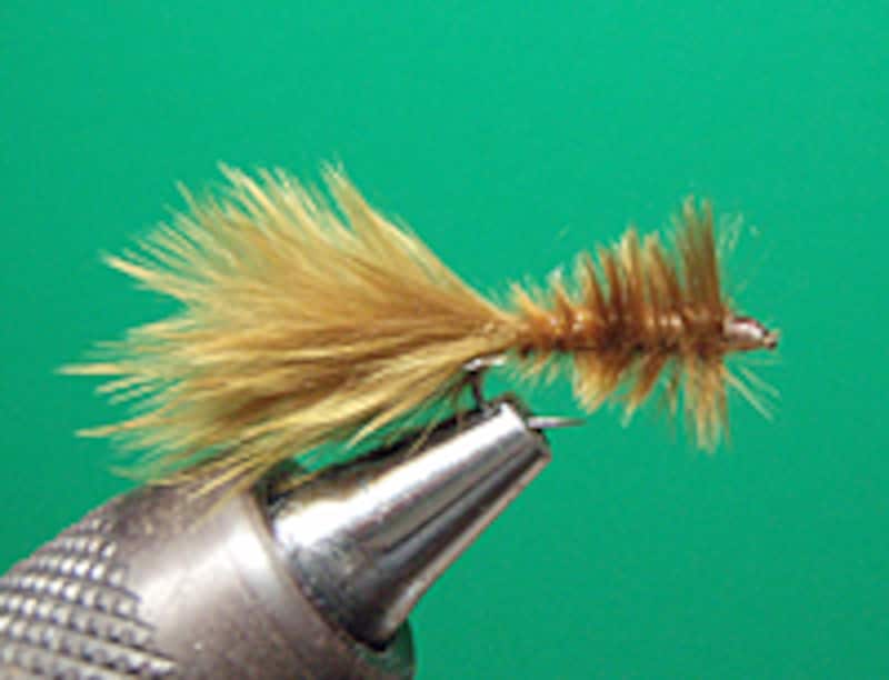 | これはタコフライと呼ばれるタイプ。なんともいえない愛らしいフォルムだが、管理釣り場のトラウトのキラーフライだ。大きさや色違いを用意しておこう |