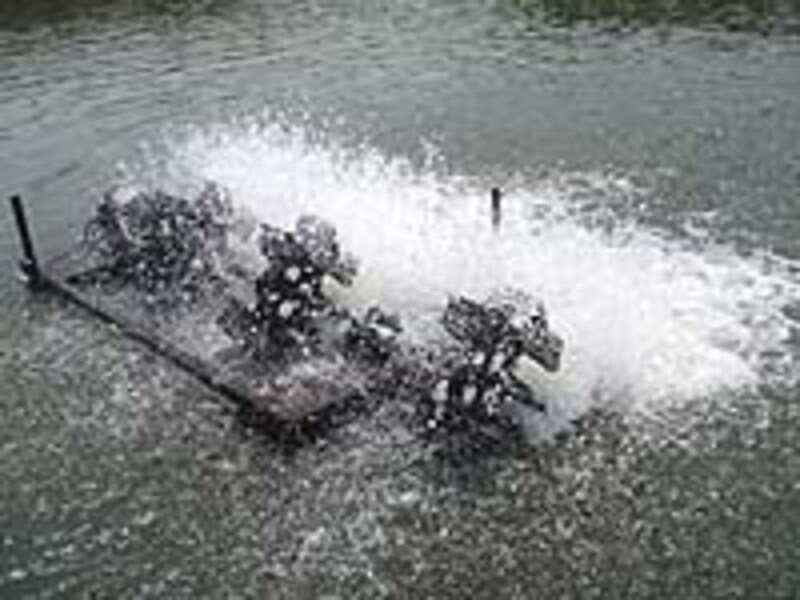 | 池に水流を作るための装置。両脇の反転流や、流れがゆるくなる場所がポイントだ |