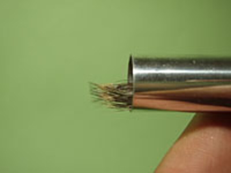 ヘアスタッカーを水平にして中を引き出す。するとエルクヘアーの先端は揃っているはずだ。うまくいかないときは慌てずにもう一度戻して再度同じ作業をしてみよう。