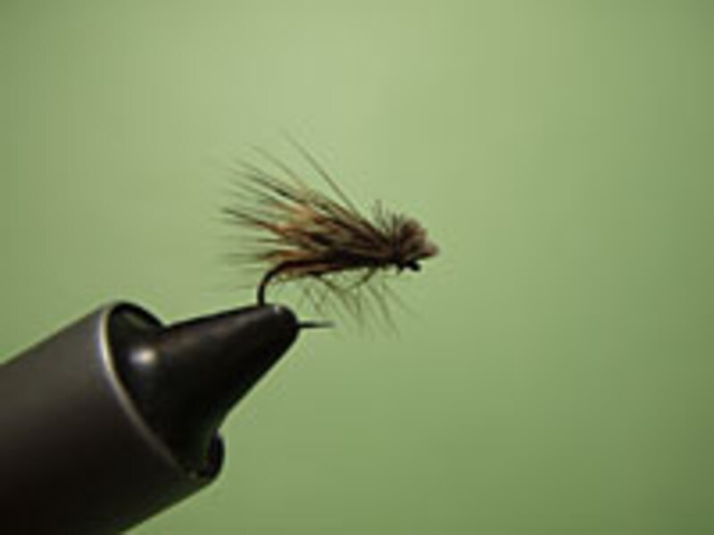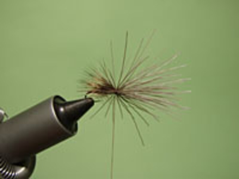 フレアしたエルクヘアーのあまりをカットすれば出来上がり。エルクヘアーカディスのもっともオーソドックスなパターンだ。