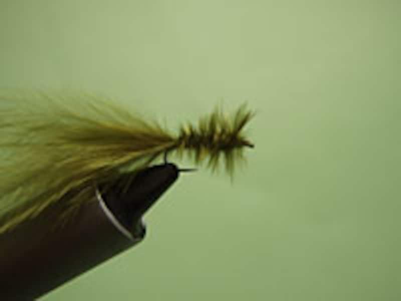ボディーに使ったマラブーの余りをキレイにカットしてフィニッシュすれば完成だ。テールの加減だが、フライを動かしてスイミングさせるときは長め、ウキ釣りのようにジッとさせておくときは短めにしてみるとよい。水中でマラブーがひらひらしていないときは量が多いので少しちぎってあげよう。