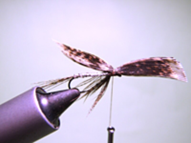 日本で使われるウェットフライの中でも、もっともオーソドックスなパターンがシルバー・マーチ・ブラウンだ。いろいろな名手がオリジナルを作っているが、ここではウイングにターキークイルを使ったパターンを紹介しておこう。
