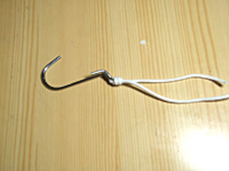 1.リング部分にラインを通したら折り返して大きな輪を作る。