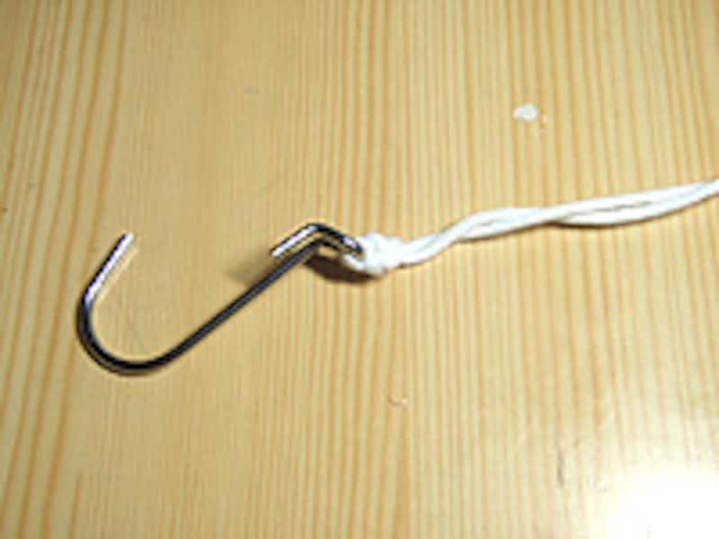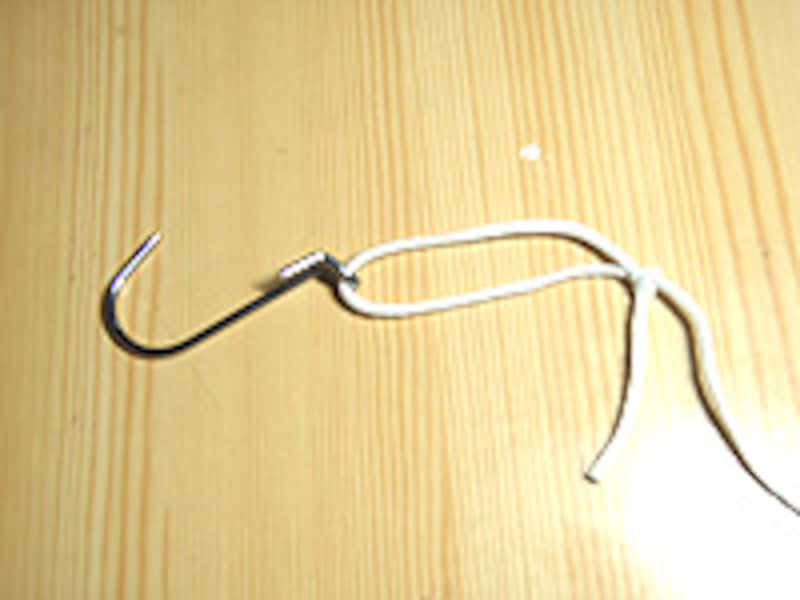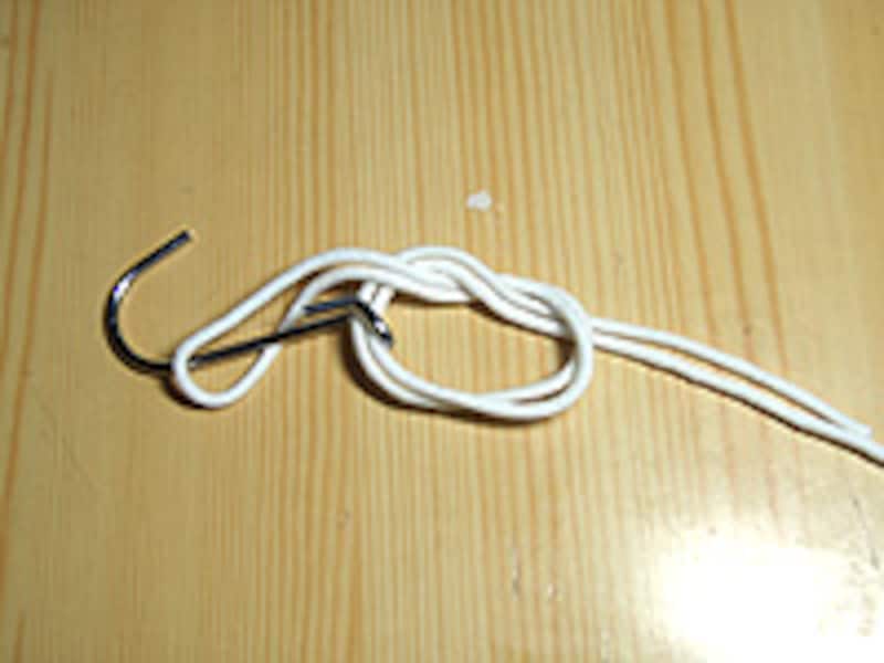 3.出来上がった先端の輪に結ぶ対象をくぐらせる。