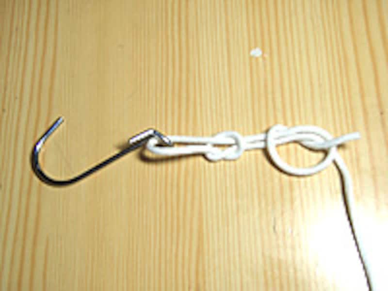 3.両方の輪を引き絞り、メインラインを引くと完成。輪の大きさは2回目に作る輪の位置で調節できる。