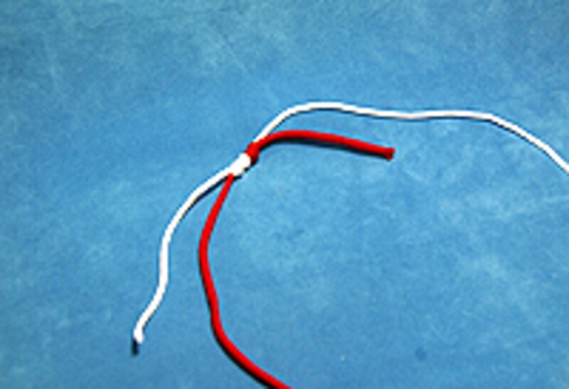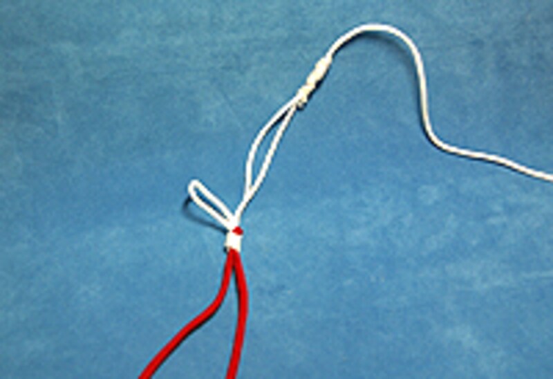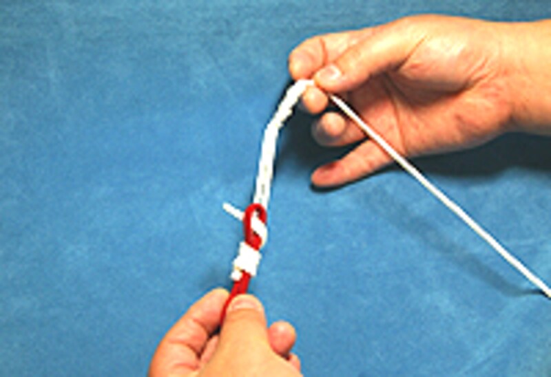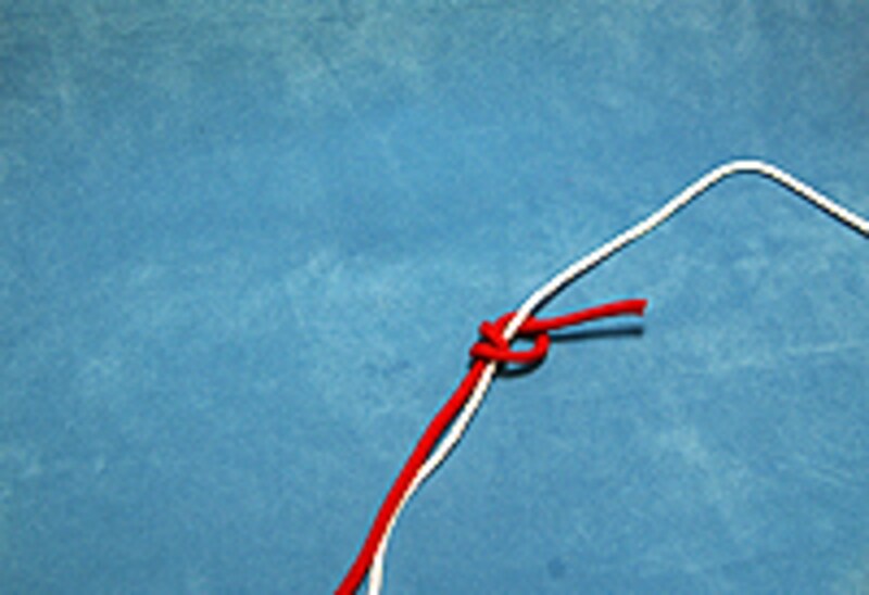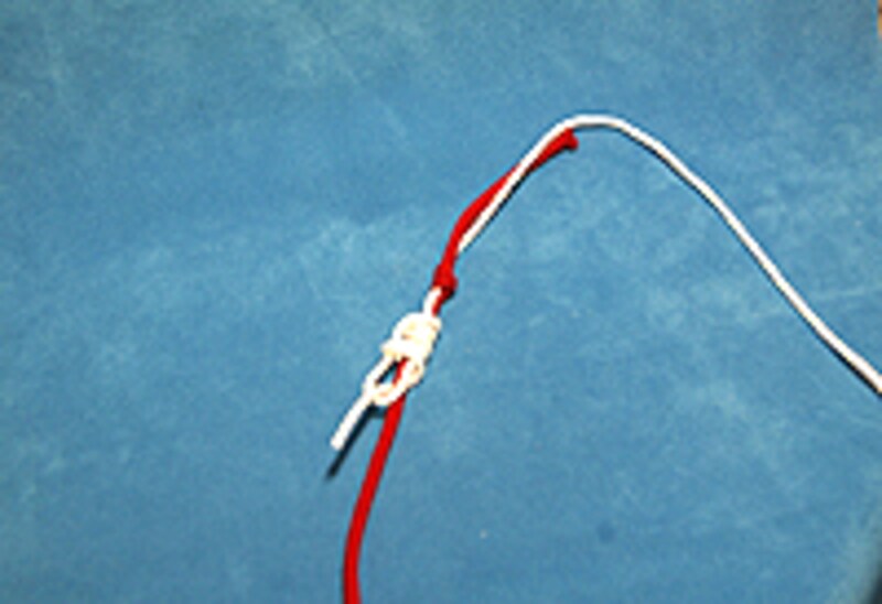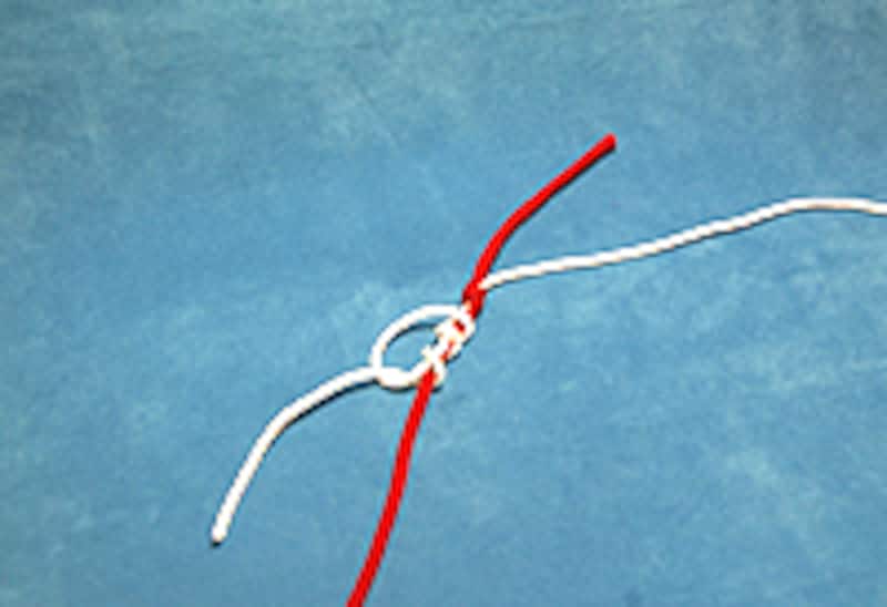 | ユニノット、日本では電車結びといわれる結びはライン同士を結ぶのに適している。簡単だが強度が弱いのが難点 |