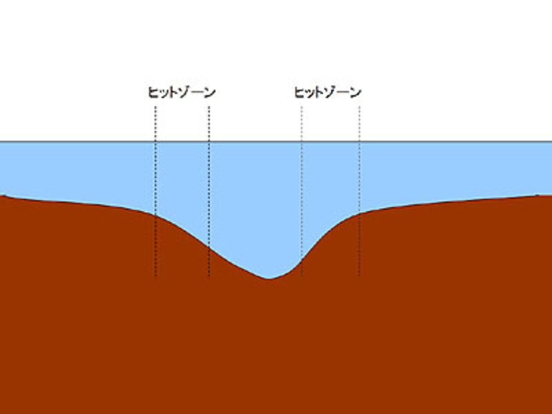 回遊している元気なシーバスは潮流に合わせてミオ筋に沿って移動することが多い。回遊を待ち受ける釣りになるので辛抱が必要だが、パターンが分かれば連続ヒットも可能になるのがこの釣りの魅力。対岸まで距離が短いなら流れを横切るようなイメージで、流芯までがやっとというような場所ではミオ筋がつくるカケ上がり周辺を狙うとよいだろう。