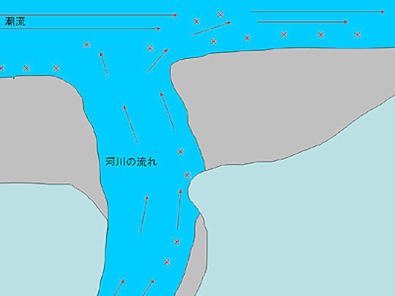 こうした場所に、シーバスは餌を求めてやってくる。干潮時に海底が露出するところではなく、河川や潮流の流れによってできるエグレた部分(ミオ筋)や、海に落ち込むブレイクラインに沿って回遊しているのだ。