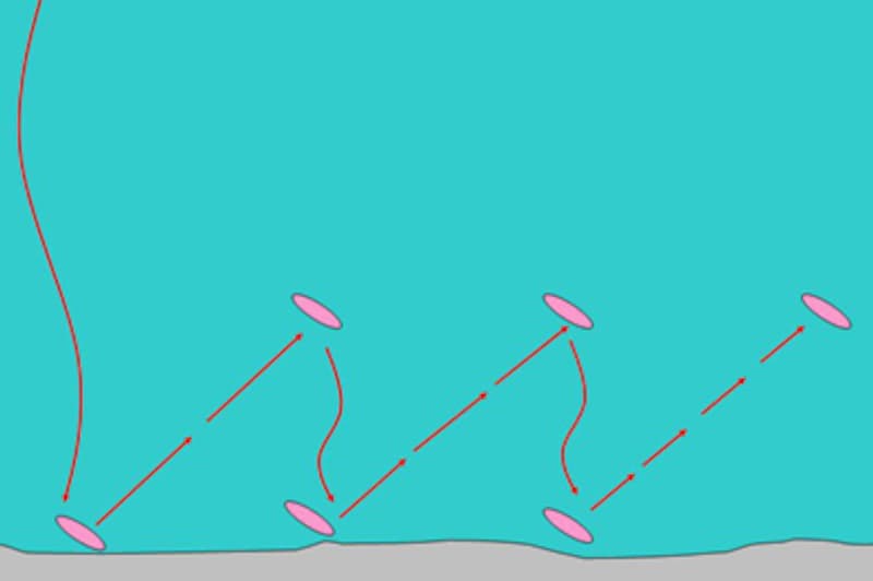 ダートを簡単にいうとエギを横方向に移動させるアクションのことになる。イメージとしては左右に向きを変えながら逃げ惑う小魚という感じだ。基本的にエギはそれ自体がアクションすることはない。しかし、エギを急激に加速させてストップさせると惰性で左右どちらかに向きを変えることができるのだ。