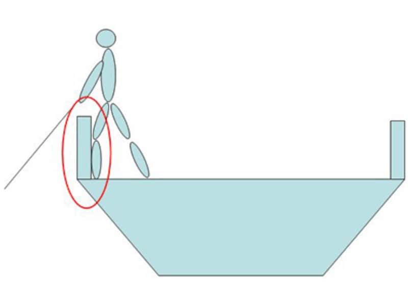 上のイメージ図を見れば分かると思うが、体の一部を船体に密着させてバランスを取るだけだ。これはプレジャーボートでも乗合船でも同じことで、船舷に片足をぴったりとくっつけてしまえば良いのだ。舷が低いプレジャーボートならレールなどを利用して、船の揺れに身を任せられるような姿勢を保つようにしよう。注意することは、船の揺れに逆らおうとしないこと。左右に大きく揺れる場合でも、下半身は船に密着させておけば、上半身が勝手にバランスをとってくれるはずだ。密着させる足は右舷側に立つとき、左舷側に立つとき、さらに船首に立つときなど、シーンによって変わってくるうえ、個人の効き足もあるのでよりバランスを保ちやすいほうを選べばよい。何回か通えば、構え方は自然と身につくと思うので、最初は無理をせず、大きな揺れが来たら釣り座に座ってしまうなど、安全に釣りができるようにしたほうが良いだろう。