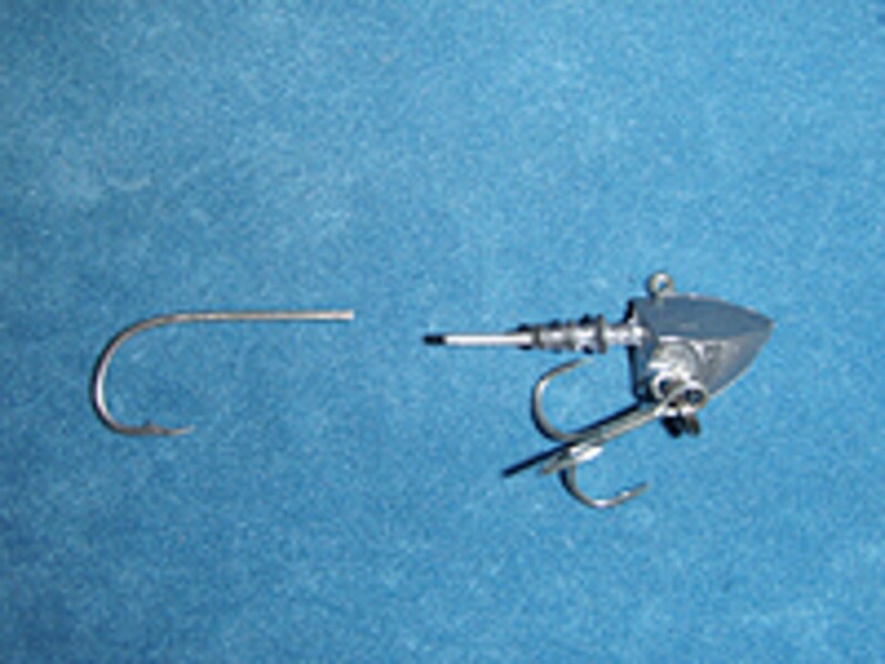 切り離したジグヘッド。リアフックは使わないので捨ててしまおう