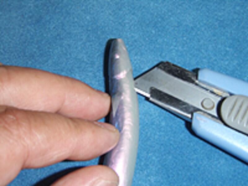 もうひとつはソフトルアーをチューニングしてしまう方法で、お腹側にスリットを入れるやり方になる。スリットはかならず真っ直ぐに、かつ深さも一定にするように事前に準備しておくとよい。使うジグヘッドの大きさとスリットの長さと深さを合わせておけば、いざというときでも瞬時にセットできるというわけだ。![]() |