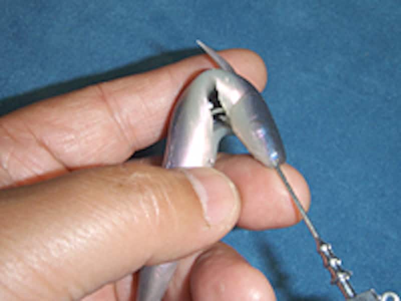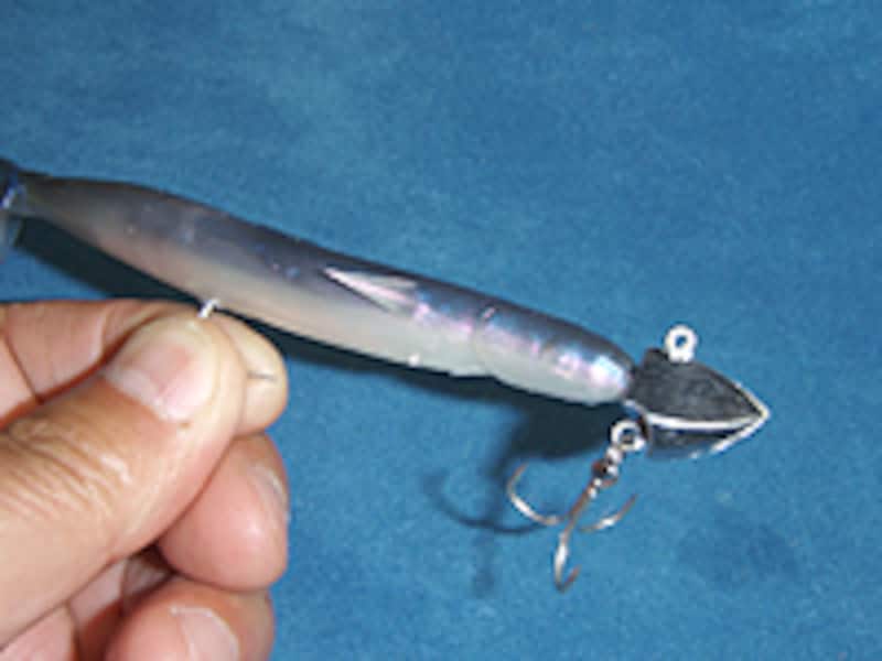 この他にも最初から長いソフトルアーをセットしやすいように工夫が凝らされている製品を使うという手もある。いずれにせよ、きれいに真っ直ぐセットできなければ、ソフトルアーは本来の働きをしてくれないので十分注意しよう。
