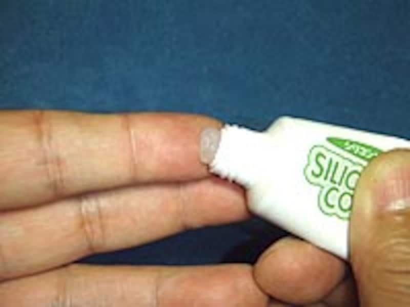 次にシリコンを用意し、ほんの少量指に付着させる。フライ用に乾いてもしなやかさを失わない製品があるので、それを使うとよいだろう。