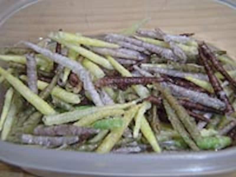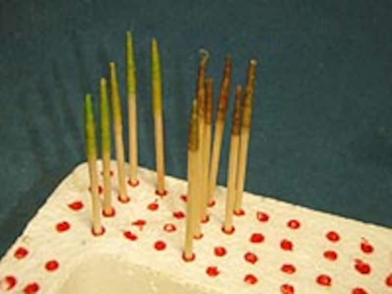 シリコンにもよるが、完全に乾燥すると爪楊枝から抜けづらくなるので、乾燥時間の半分を目安に繊維を抜き取っておく。このとき形が崩れないように根元から爪でしごくようにゆっくりと抜くとよい。