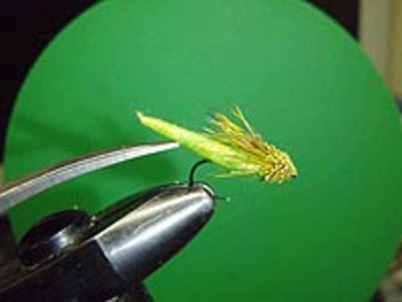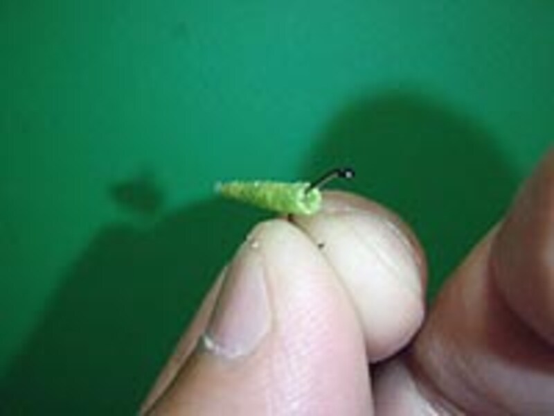 | エクステンドボディを使ったアンブレラダン。こんな変わったフライでもシチュエーションによってはヒットパターンになるのが管理釣り場の面白いところだ |
