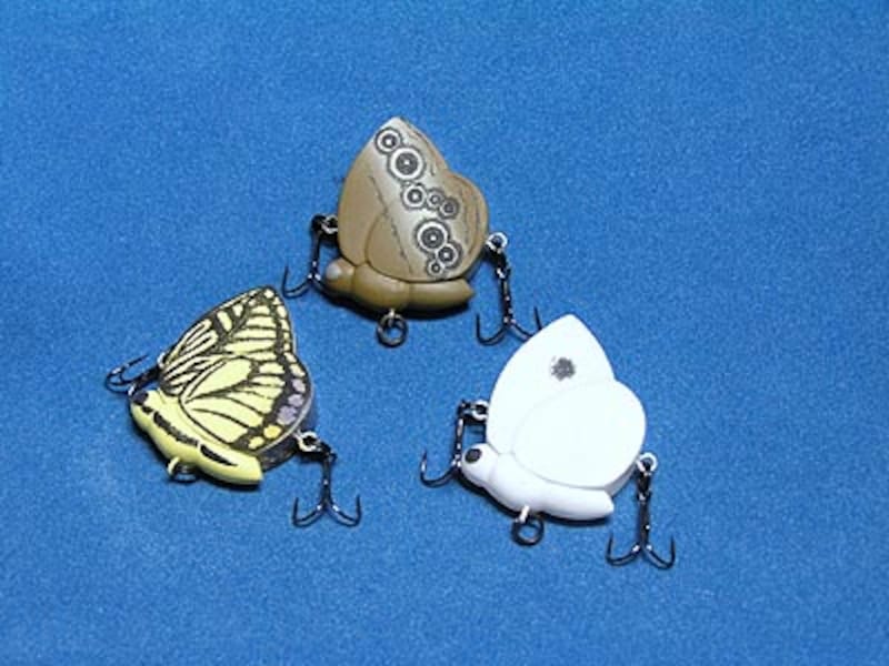 使い方も簡単で、投げて水面に着水したらロッドを小刻みに動かすだけ。まるで水面に落ちてしまった本物のちょうちょがもう一度羽ばたこうとしているかのようで、魚はそれを逃がすまいと猛然と食いつく、ということになる。カラーラインアップも単純に美しいだけでなく、魚がよく反応するアースカラーをうまく使っているのもさすがとうなずいてしまうところ。持っていて、使っていて、さらに釣った魚を見せびらかして、と楽しさがつまった面白ルアーといえる。