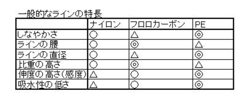 こちらの表は一般的なラインの特性をまとめたもの。先ほど解説したとおり、それぞれシチュエーションによってはメリットともデメリットともなり得る要素も多いのだ。こうした特長をよく掴んでからライン選びをしてみると、これまでの釣りもぐっと進化するはず。次回はもう少し踏み込んで実釣からみたライン特性を考えてみよう。