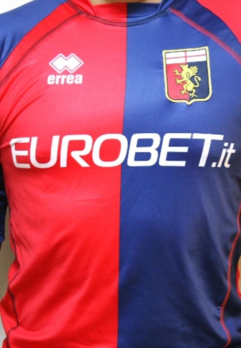 | ジェノアの胸ロゴはスポーツ専門ブックメーカーのEUROBET。欧州ではこうした賭け事に関するスポンサー企業も多い。(写真:斉藤健仁) |