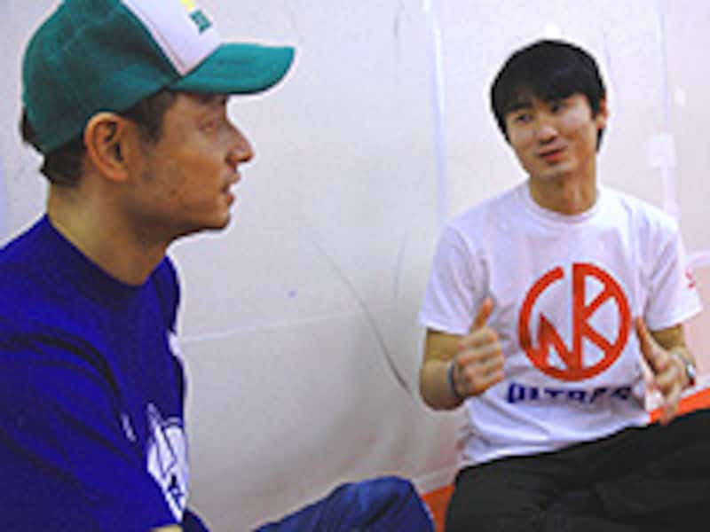 | 『キン肉マン』世代のガイド(右)。インタビューには、自然と熱が帯びる |