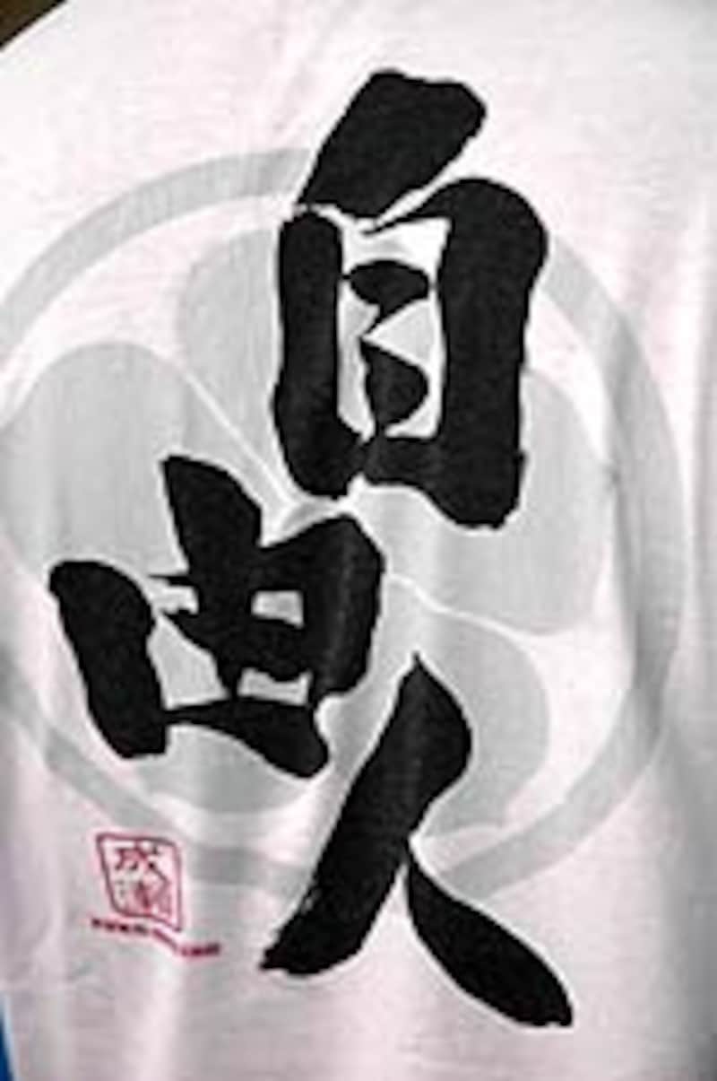 | 成瀬選手のTシャツ「自由人」。彼のメッセージでもあり、生き方でもある ※購入は次々頁を参照 |