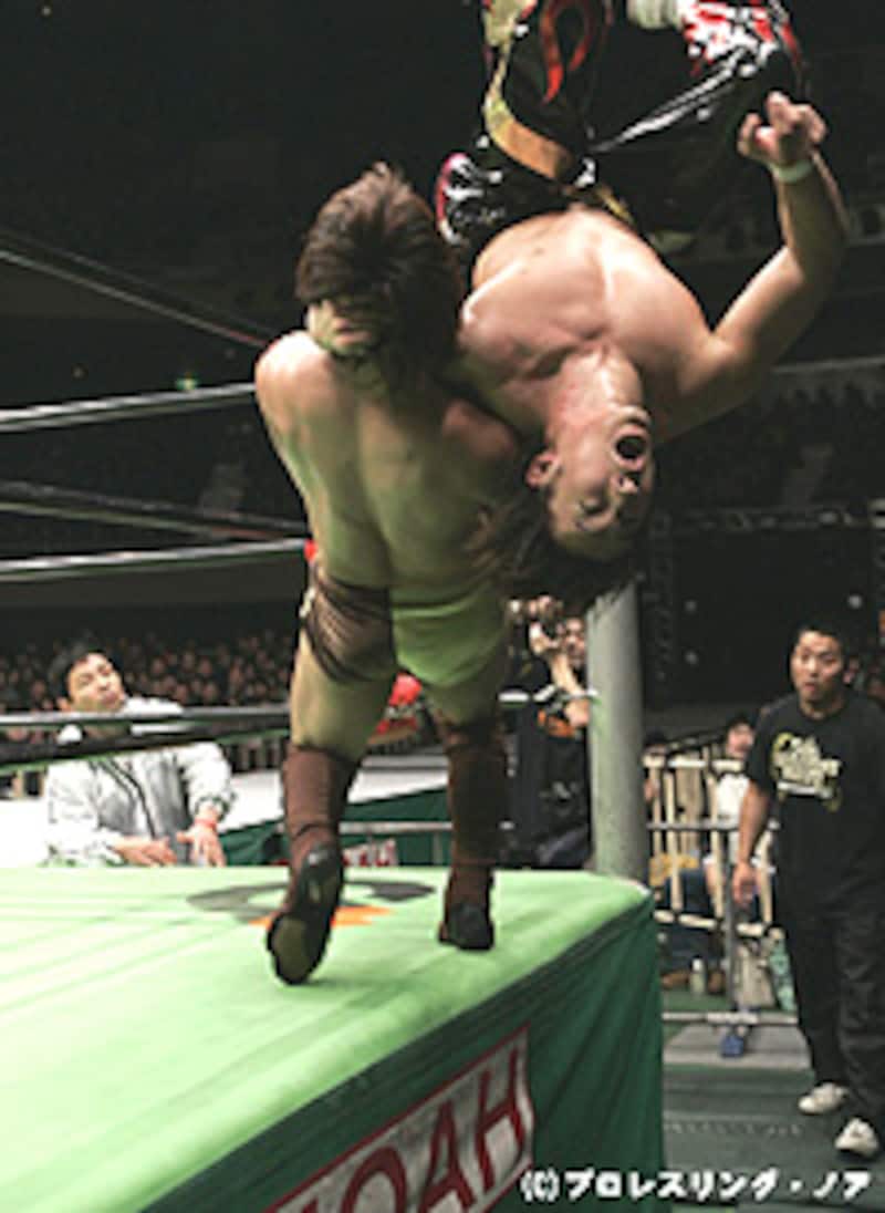 丸藤は、不知火を様々なバリエーションで進化をさせる。リングのエプロンサイドから場外へと繰り出す断崖式不知火に、相手をコーナーにのせてから不知火を放つ雪崩式不知火。極めつけは、相手と共に自らもコーナートップへと登り、正対した状態から相手の首を抱えて一緒に月面宙返りを敢行する究極の大技、不知火・改までと多種多様。その閃きは、見ている者の想像力をも上回る。