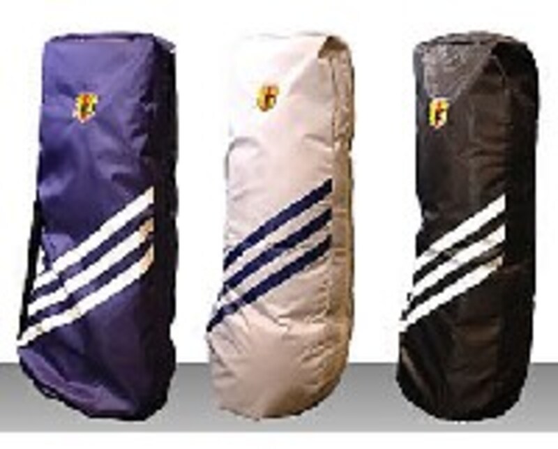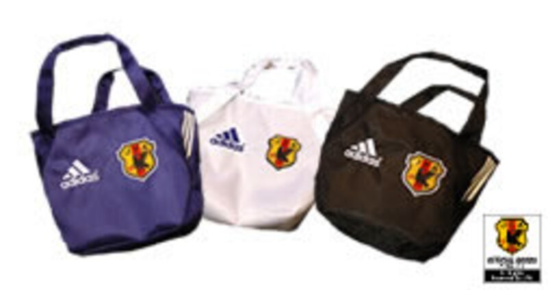 キャディバッグとともに人気となりそうなのが、ボストンバッグとシューズケースです。こちらも3本ラインの前日本代表ユニフォームのデザインで、ブルー、ホワイト、ブラックの3つのカラーがラインナップされています。PU(合成皮革)素材で、重厚感のあるデザイン。ボストンバッグ 12,600円、シューズケース6,300円です。
