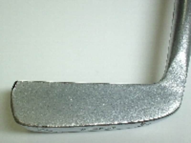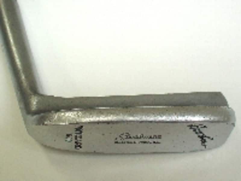 名器の形状 クリックすると拡大します 右画像は構えて見たところです。アメリカで多く用いられた「Wilson 8802」に比べると、シャフトの中心線の延長よりフェースがかなり後ろにあり、いわゆる「グースの強い」形状。ニクラウスを尊敬するジャンボ尾崎さんが、同じグースの強い「Tommy Armor IMG5」を愛用していたことが思い出されます。 クリックすると拡大します 右画像はフェース面です。トゥ側のフェース高が高くなっているのが、ウィルソンやマグレガーのL字型パターにはない大きな特徴。これは予測ですが、トゥ側にボリュームのあるデザインは、右に押し出すイメージを抑制しフェードヒッターの二クラウスにマッチしたのではないかと思います。 クリックすると拡大します こちらは後ろから見たところ。 >>次は、スポーツマンとは>>前のページへ123次のページへ