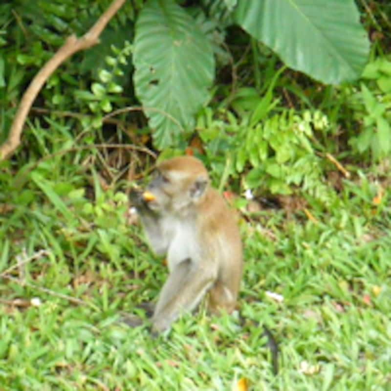 ビンタンで知り合ったオーストラリア人の女性ゴルフインストラクターが、「私、サルは大っ嫌い! ヘビのほうがまだ好きよ」と言っていたのが印象に残っています。よっぽどおサルさんたちにひどい目にあったよう……。ガイドと出会ったサルたちは、一様に可愛い連中でしたが、それは食べ物をもっていなかったからかもしれません。バナナやオレンジなどを持っていると取り上げられるゴルファーもいるようです。