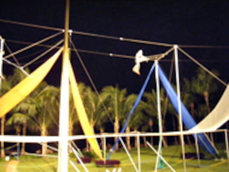 | 名物空中ブランコ。専門のスタッフがレクチャーしてくれるため、全くの初心者でももちろんOK |