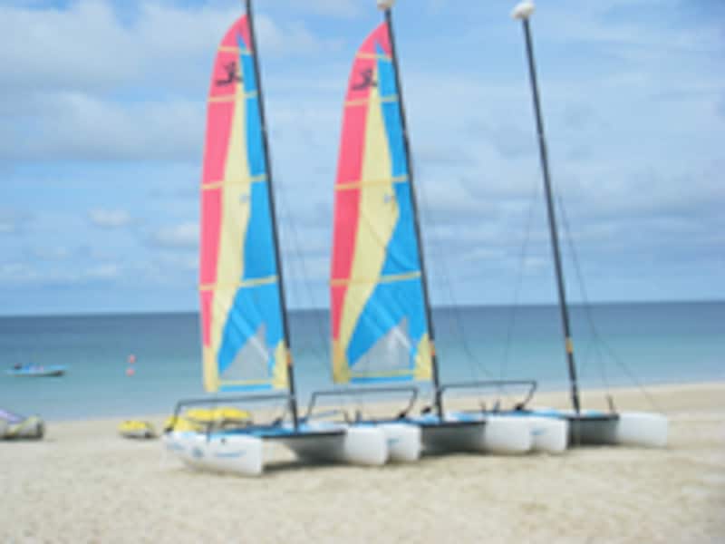 | 青い海と細やかな白い砂に囲まれ、ウォータスポーツも存分に楽しめる |
