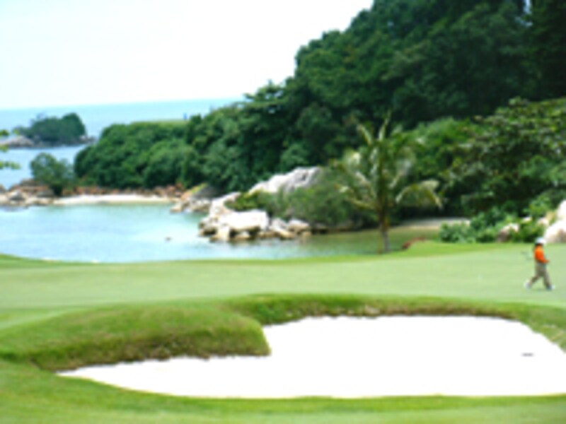 | アイランドリゾートだけに、海や池が印象的に配置されている(※写真はリアビンタン ゴルフクラブ) |