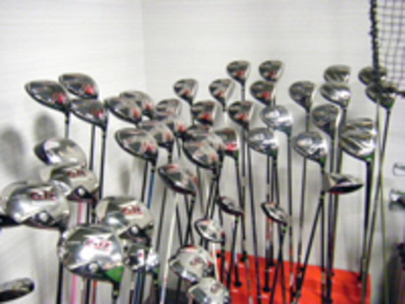 後方には、試打用のクラブがずらっと用意されていて、モデル別はもちろん、シャフト別、ロフトやフレックスに至るまで、かなり多くのスペックが用意されています。