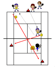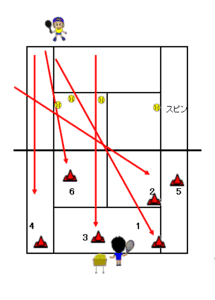 ドリル5:レシーブ練習 面数: 1面 レベル: 初級以上 時間: 15分~20分 人数: 6~8名 目的: レシーブの安全コースの狙い ・・・ターゲット サーバーは3カ所にサーブを丁寧に入れます。レシーバーは数字の順を追って、返球をします。1.クロスへ深く 2. サービスダッシュに対して沈める3.正面やバックへの早いサーブに対して中ロブで相手の陣形を崩す4.パス又はロブでポイントにつなげる5.角度のついたスライスのサーブに対してアングルレシーブでポイントにつなげる。 バックサイドについても場面を逆にして行う。サーバー役は自信のある人はレシーブ側にバックサイドにも構えさせ交互にサーブを入れる ドリル6: ドロップショット&ロブ追い 面数: 1面 レベル: 中級以上 時間: 5分から10分 人数: 4人~6名 目的: 前後のフットワーク ・・・ターゲット 1.ベースラインのセンターマーク付近からコーチのスタート号令でバックハンドにショートボールを送球する。2.生徒はもうダッシュ!いつもはあきらめてしまうショットも最後の一歩で足を滑らせることで返球が可能になります。 3.送球者はキャッチを見届けた後に次に、クロスへロブを送球します。ボールとの競争になりますが、まずは全速力で落下地点に向かって走りボールが弾んだら、回り込むように最後には滑りを利用してバウンドの低い所まで落としてロブを上げます。 クレイコート対策の練習メニューはいかがでしたか? クレイコートで勝つためには体力・忍耐力を要します。体力・忍耐力を養うためにはハデなプレイをせず、コツコツ練習をするしかありません。その練習をした者だけが勝利をつかむことができるのです。 ちょっと疲れるけどがんばってチャレンジしてね。 【編集部おすすめの購入サイト】Amazonでテニス関連の商品をチェック!楽天市場でテニス関連の商品をチェック!前のページへ1234※記事内容は執筆時点のものです。最新の内容をご確認ください。