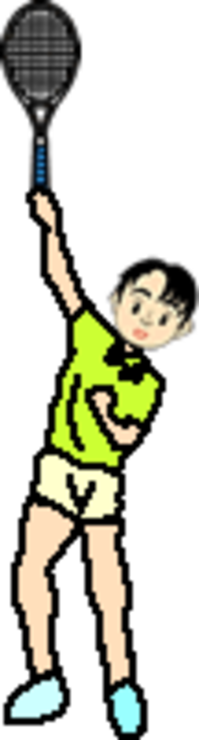 | スマッシュは予想以上に肩、腕、腹筋・背筋に負担がかかるショットです。 しかも、『決めてやろう!』という気持ちから、思わず強く振り回してしまいがちなショットです。 そのため、ケガや筋肉を傷め易いので、スマッシュ練習の前に必ず、素振りを行って下さい。 |
