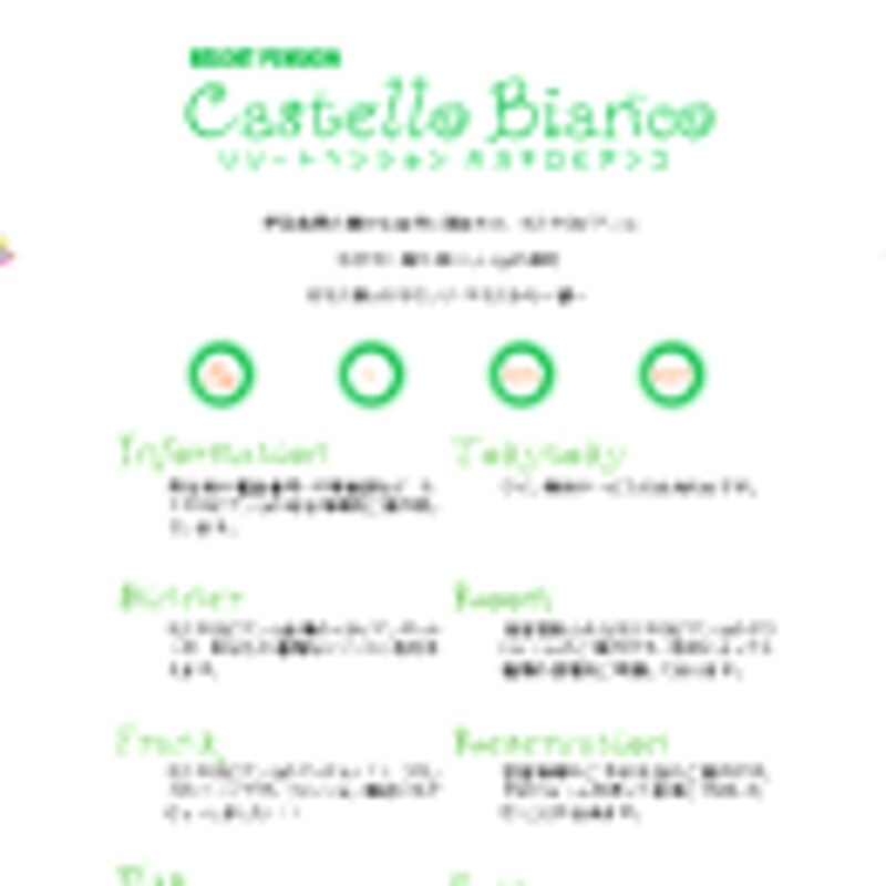 リゾートペンション カステロビアンコ 【所在地】 〒413-0231 静岡県伊東市富戸東大室3-5 Tel:0557-51-2505 |